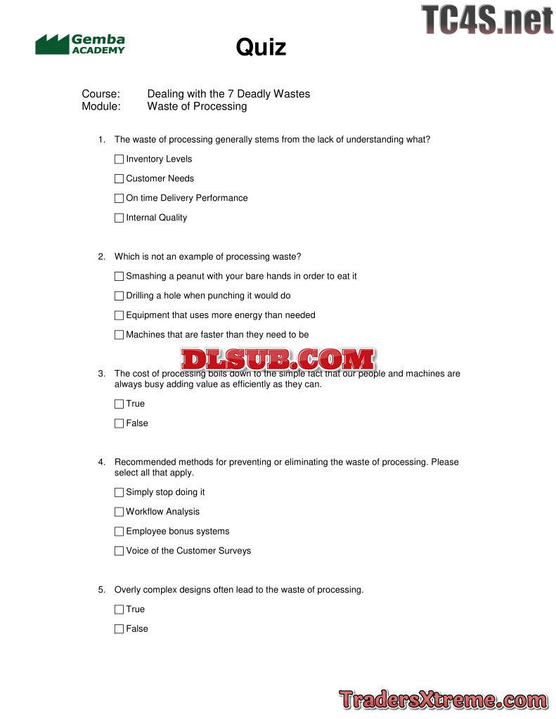 Quiz Answers Seven Wastes - JPG Image File
