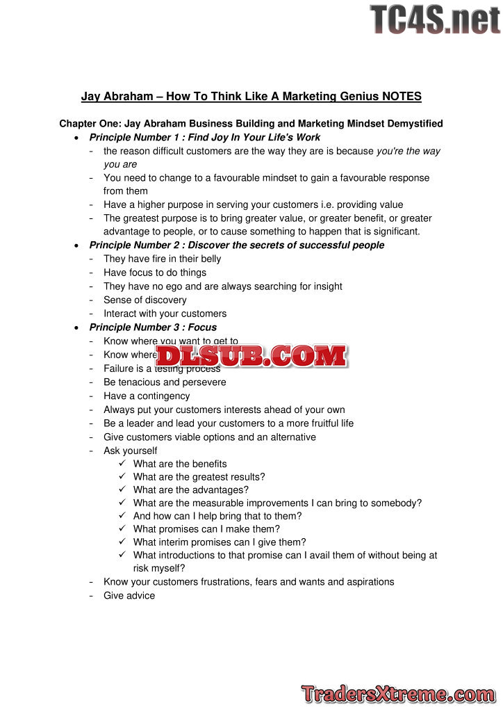 Jay Abraham How To Think Like A Marketing Genius Notes - JPG Image File