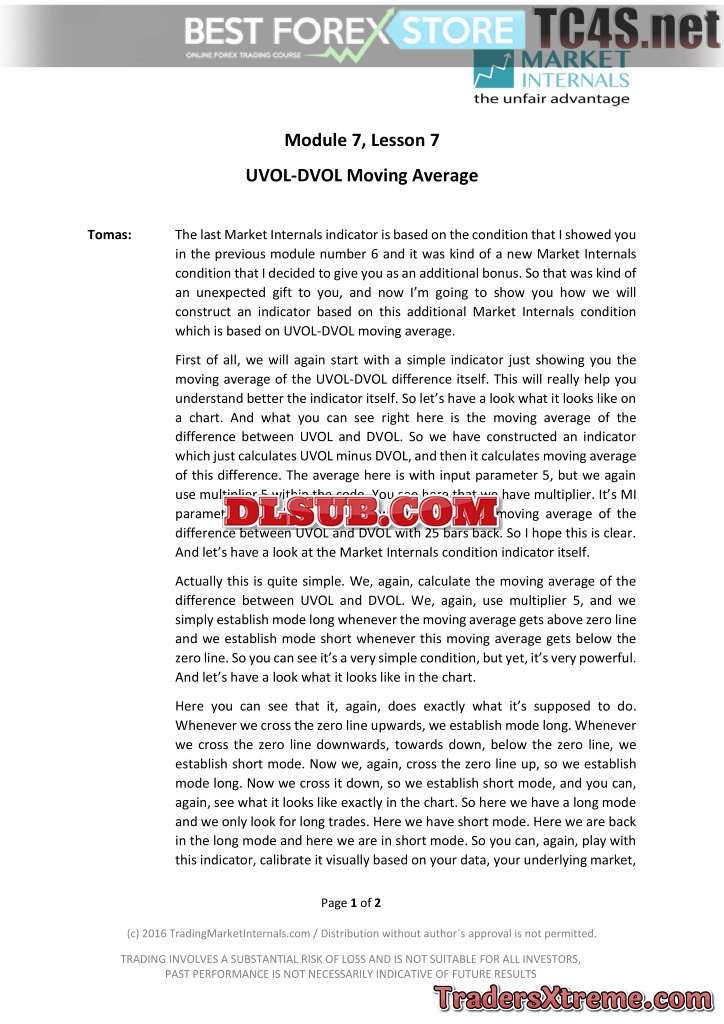 Lesson 7 Uvol Dvol Moving Average Indicator