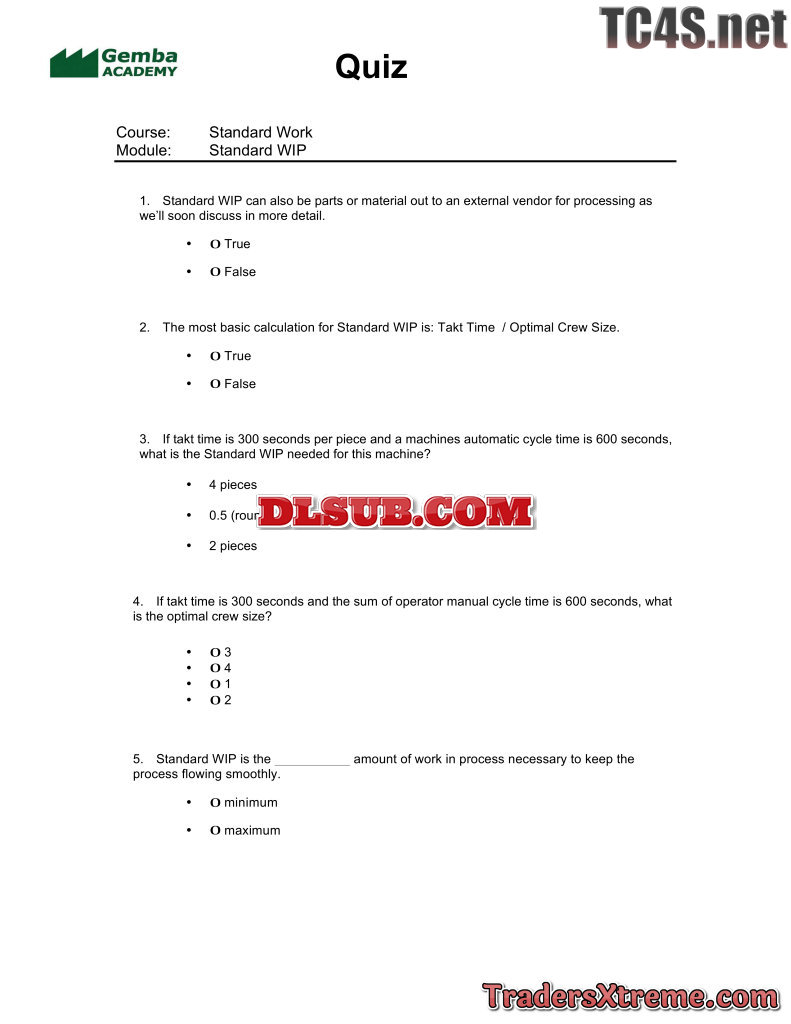 Quiz Answers Standard Work - JPG Image File