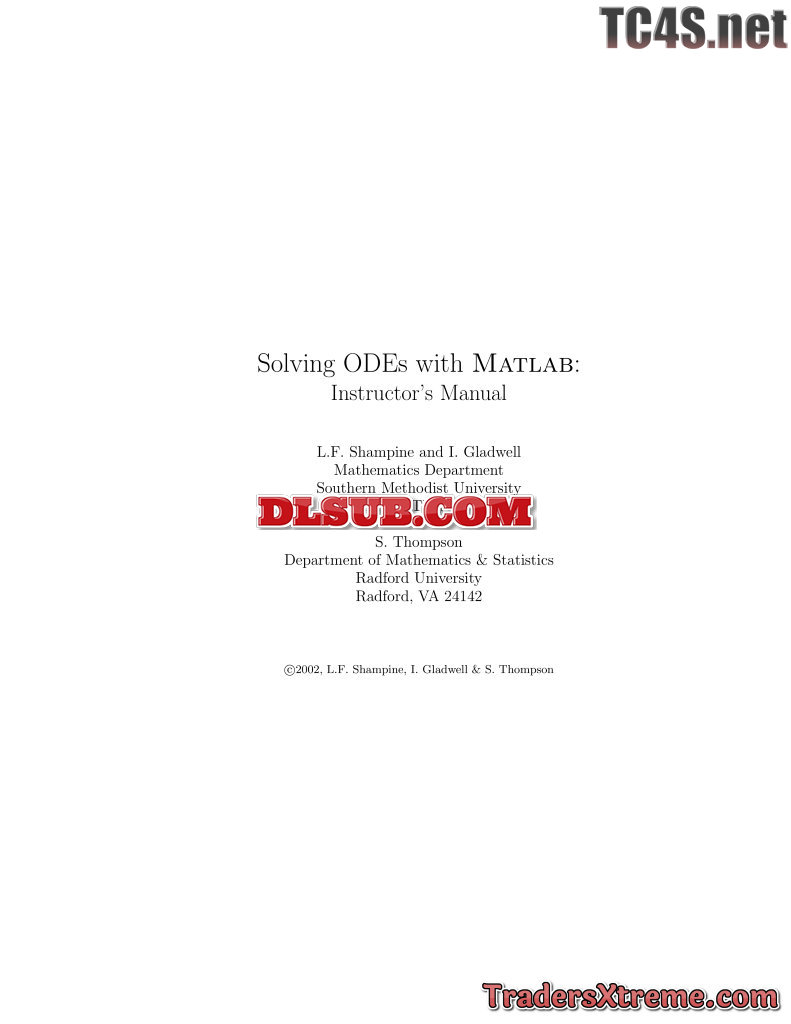 Solving Odes With Matlab Instructors Manual L F Shampine - JPG Image File